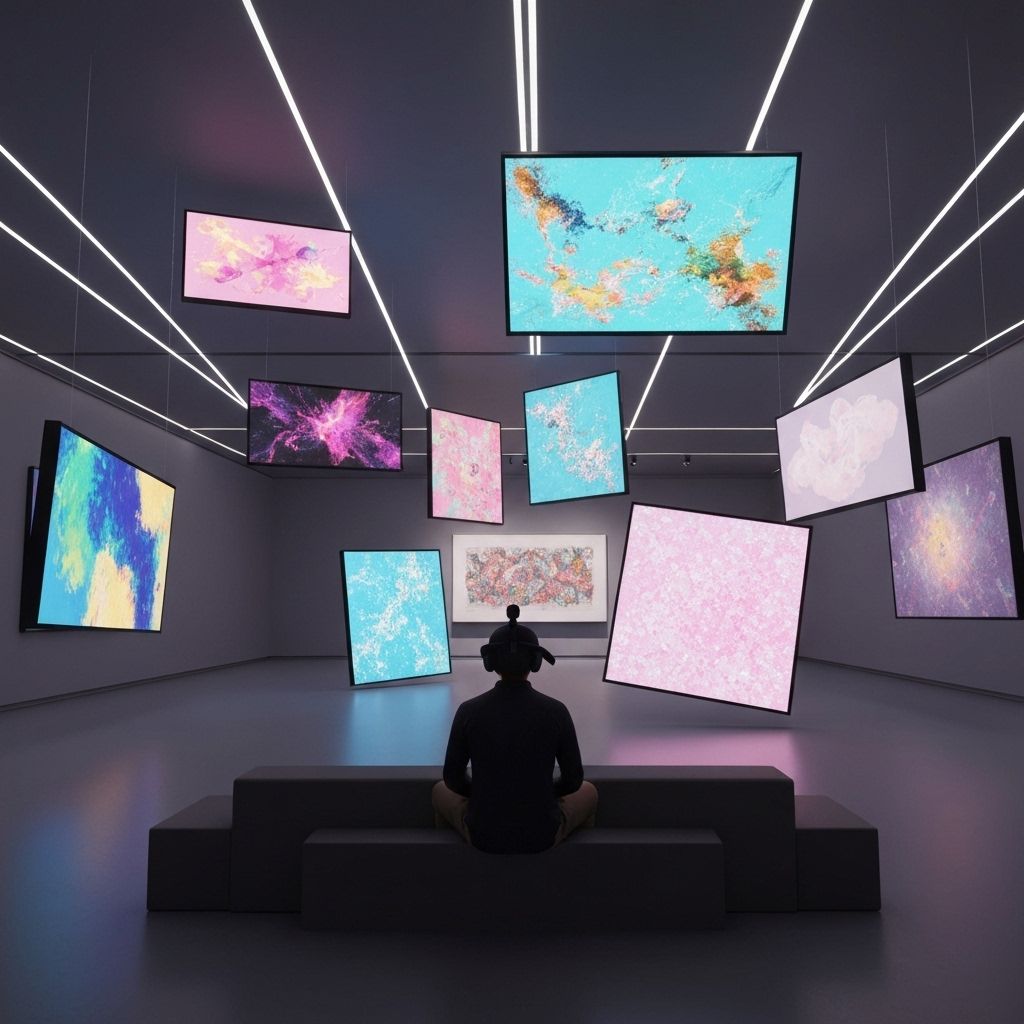 Virtual reality art gallery with spatial audio and haptic feedback integration.